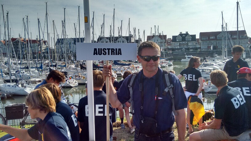Die Eröffnung: Peter darf das Österreich – Schild beim Einzug der Teams tragen.